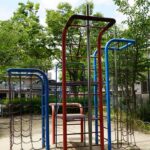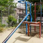 昔ながらの複合遊具がある緑のある公園