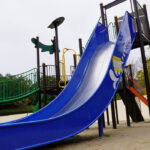 大きなグラウンドに遊具、大きな滑り台、砂場、親が休んでいられる休憩スペースと、子供を遊ばせるには十分な物が揃っています。