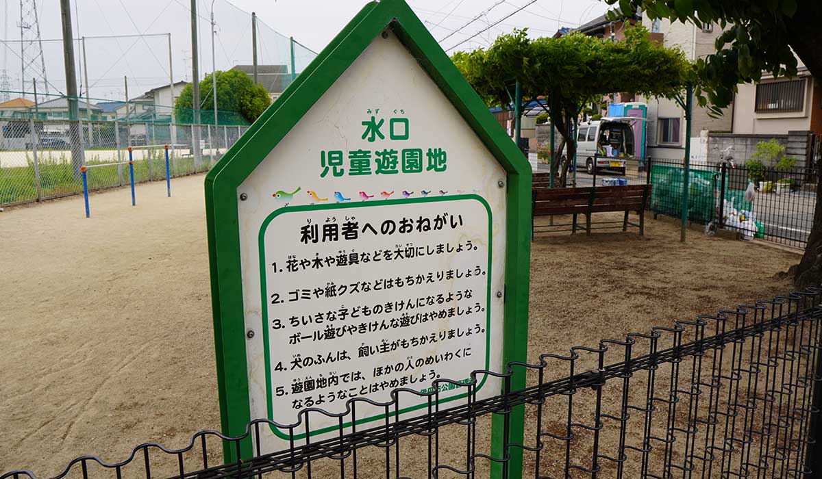 伊丹市野間北にある水口児童遊園地は、グランド横にある小さな公園