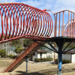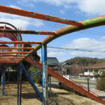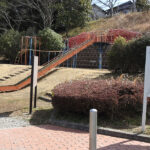 三田市にあるさつき公園は、山の上から滑り降りる感覚が味わえる滑り台